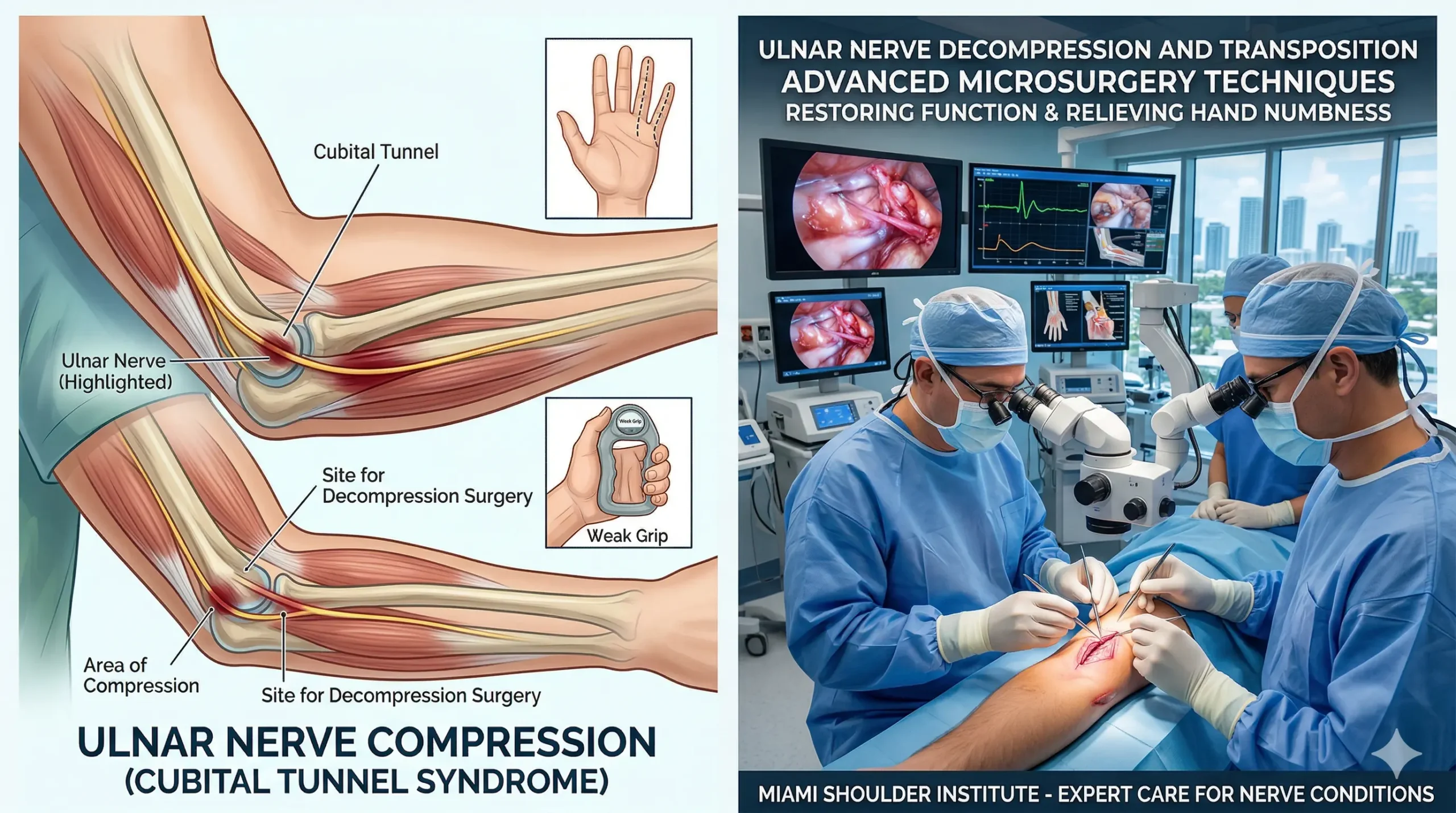Ulnar nerve compression causes tingling and weakness. Miami specialists offer surgery and care to restore function…